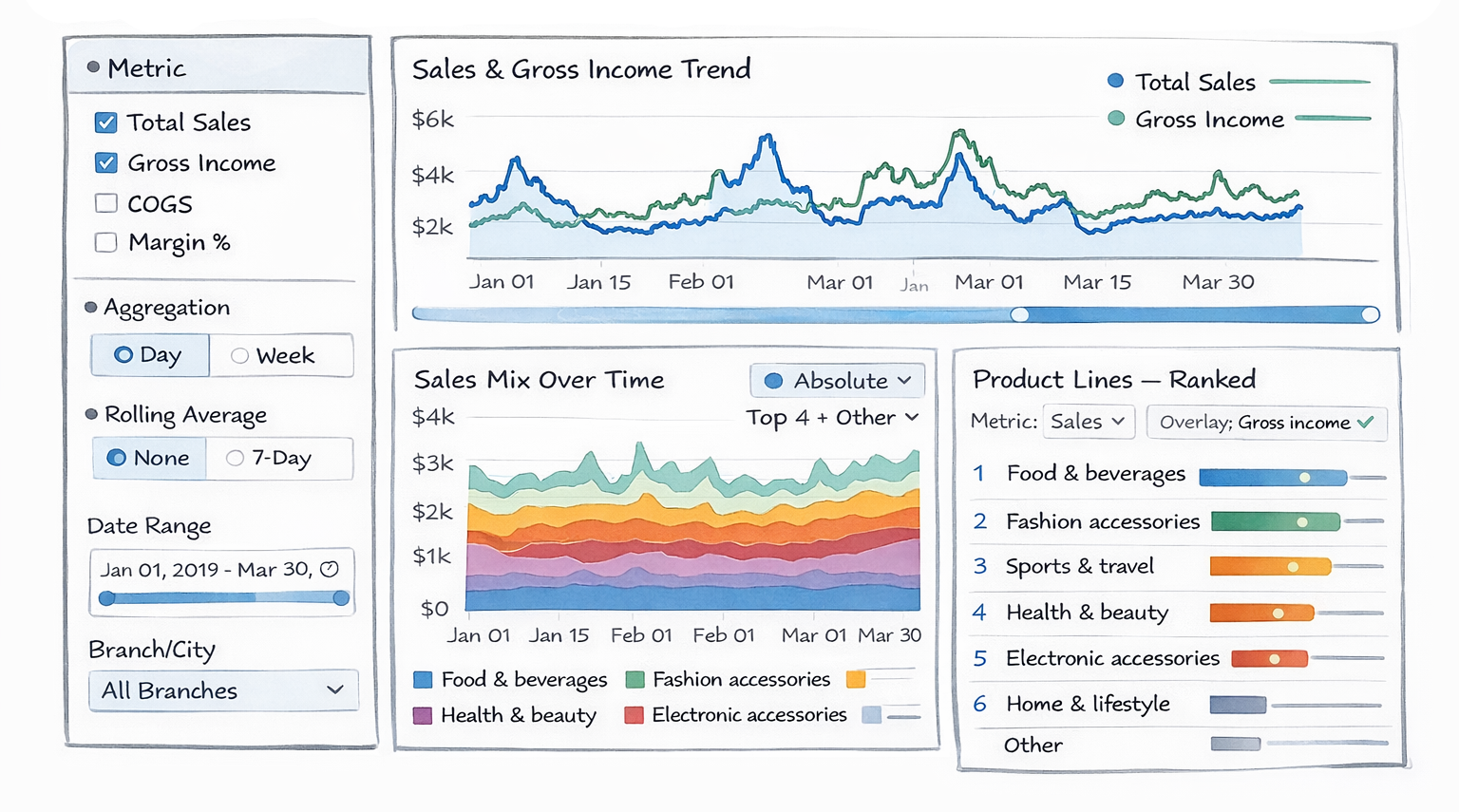 Group 2: An interactive dashboard for visualizing the performance of Walmart stores across different branches and time periods.