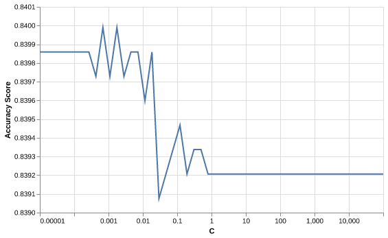 The results from the GridSearch were shown below (Figure 7), with the optimal C value of 0.000687.
