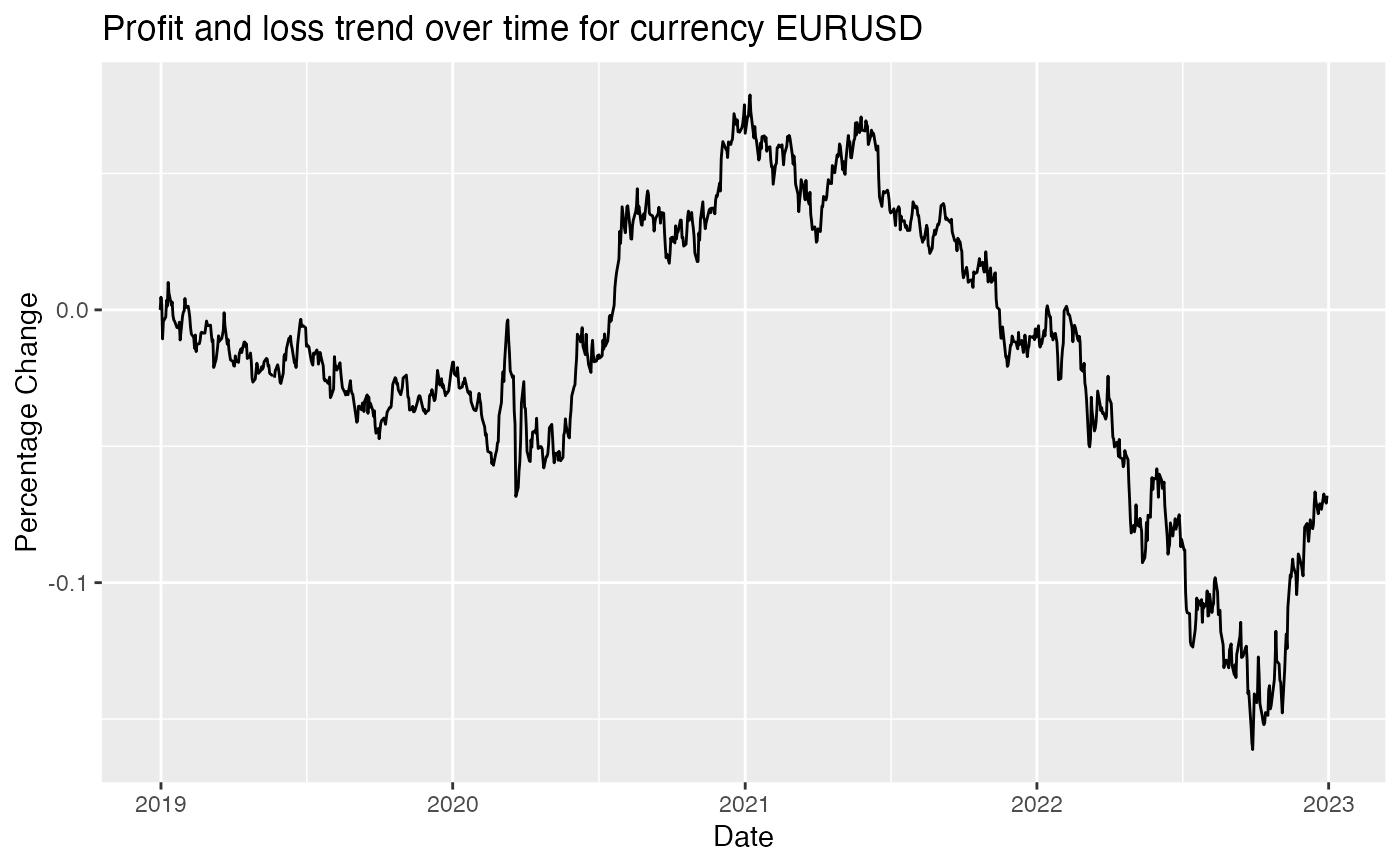 A ggplot that shows the trend of the profit and loss of a currency pair over the selected period of time