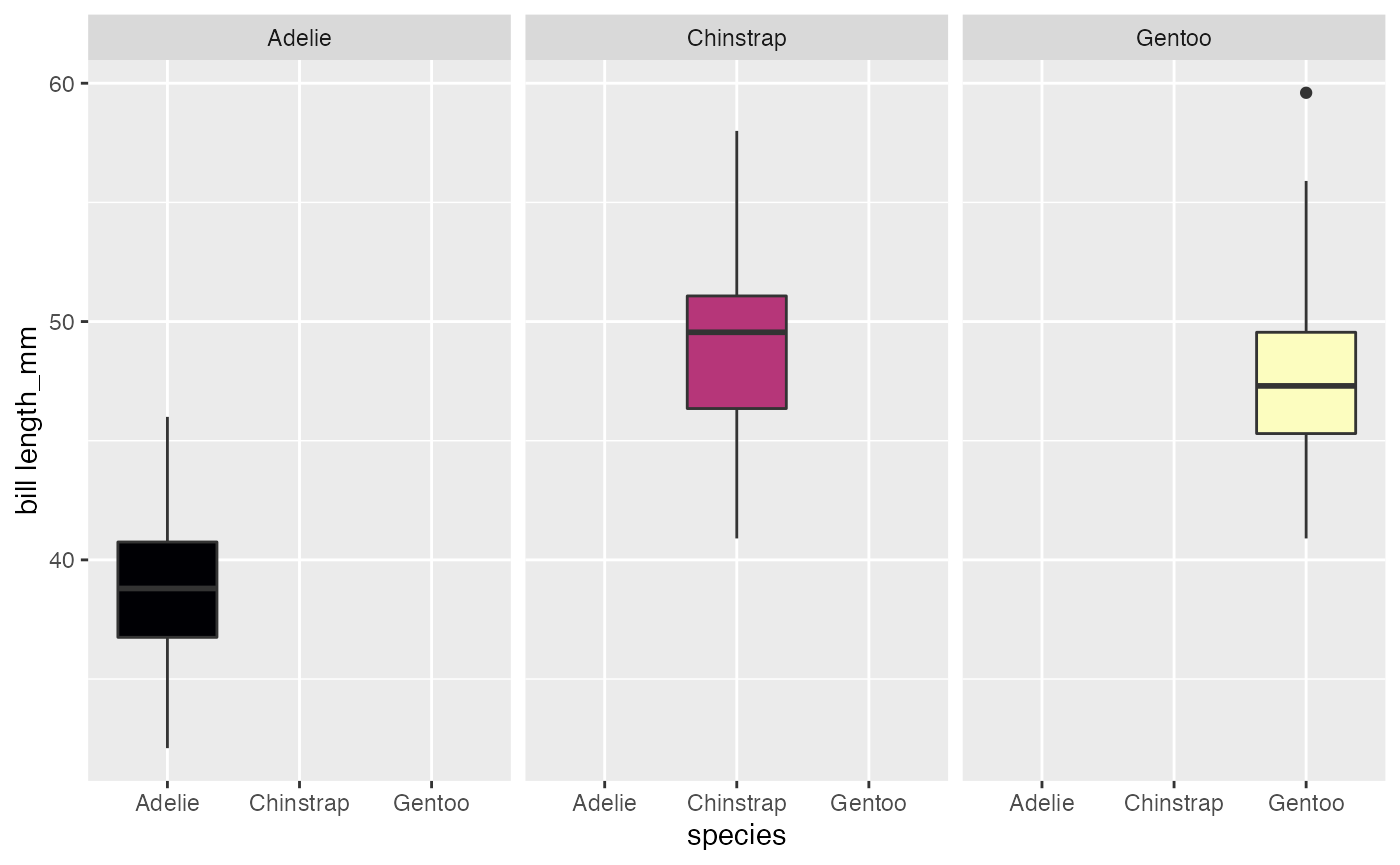 boxplot(penguins_data, species, bill_length_mm, facet = TRUE)