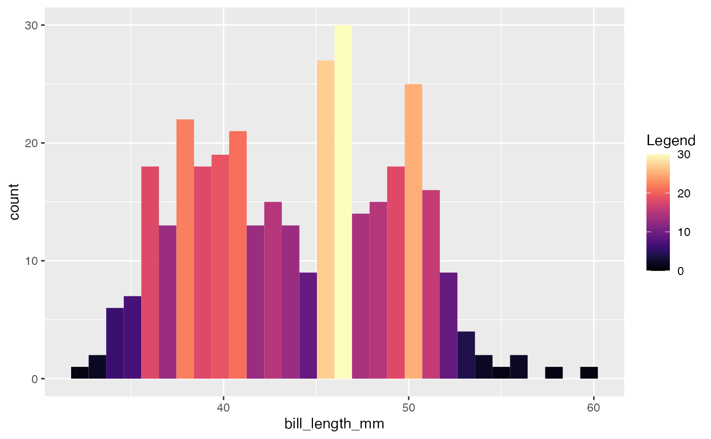 histogram(penguins_data, bill_length_mm, "..count..")